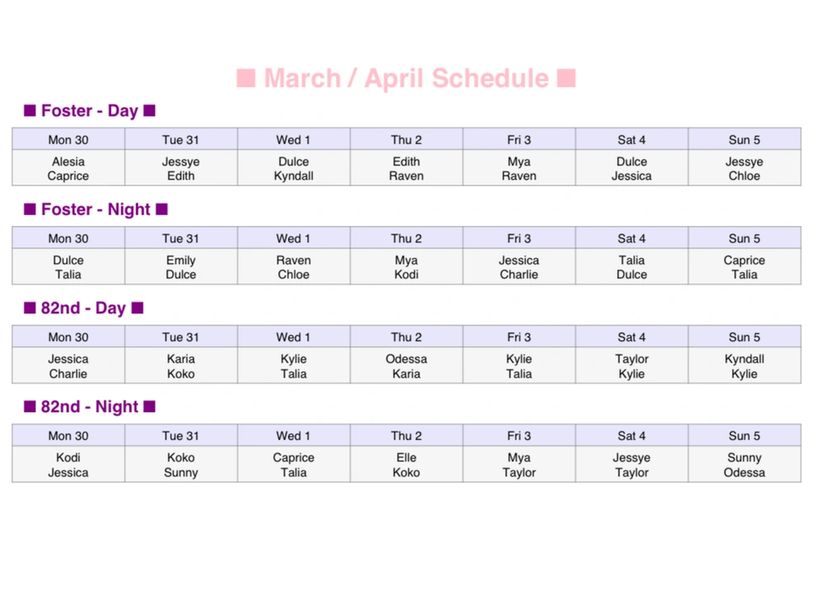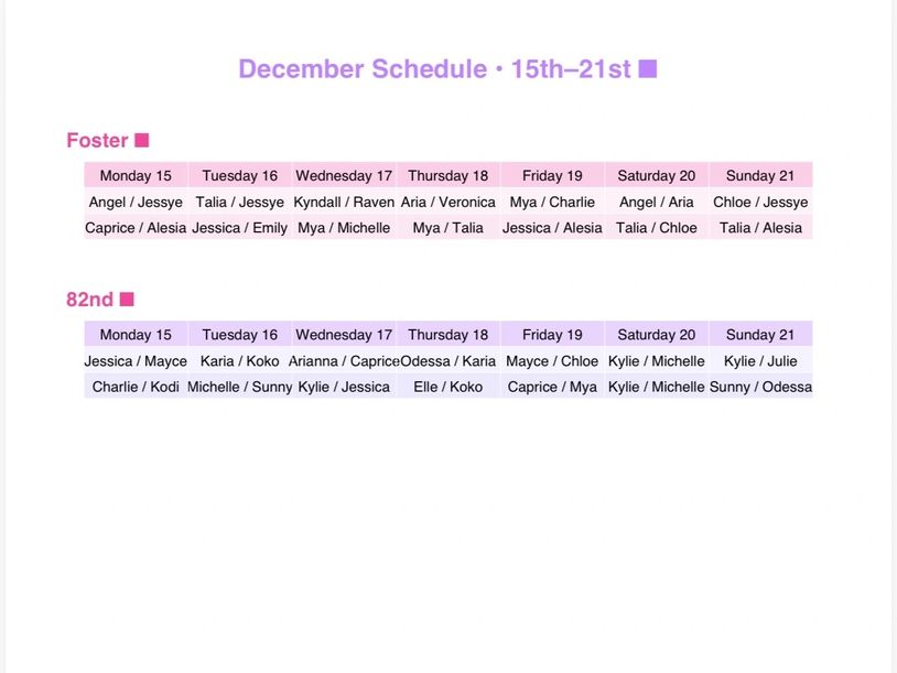 Weekly schedules